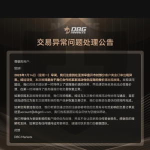 DBG MARKETS 回复澳大利亚当天早上,在亚洲早期交易时段,一些客户出现了异常的黄金订单。经调查,问题是由我们的一家流动性提供商的定价来源故障引起的。在与受影响的流动性提供商进行沟通和协调后,该提供商现已开始逐步恢复受此事件影响的客户的交易订单。因此,客户将观察到对具有错误价格的订单的调整。