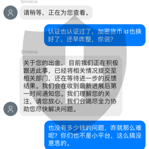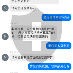 之前没有出现过这个情况,系统所谓的升级后,出现搞七搞八的问题。打了几次电话,说提交给相关部门,然后呢就没有然后了,直接退回来。下面是聊天截图