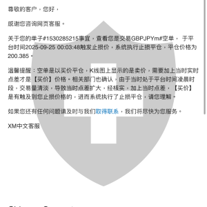首先,XM是抛单模式,所有客户的订单都是在市场价格上成交。您交易的是20微型手 GBPJPYm#,于平台时间2025年9月25日00:03分因触及止损价格被系统执行止损平仓。