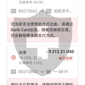 使用银行卡存入资金,本金退款至银行卡后,利润无法提取,联系相关部门处理,一拖再拖,至今未解决。