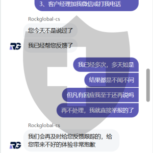 RockGlobal通过不审核信息卡出金,多次沟通邮件和客服均不跟进,无进展。