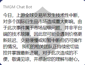 感谢您的体谅及配合,如您有进一步问题,请您联系TMGM官网客support@tmgm.com,欢迎随时与我们联系。 -